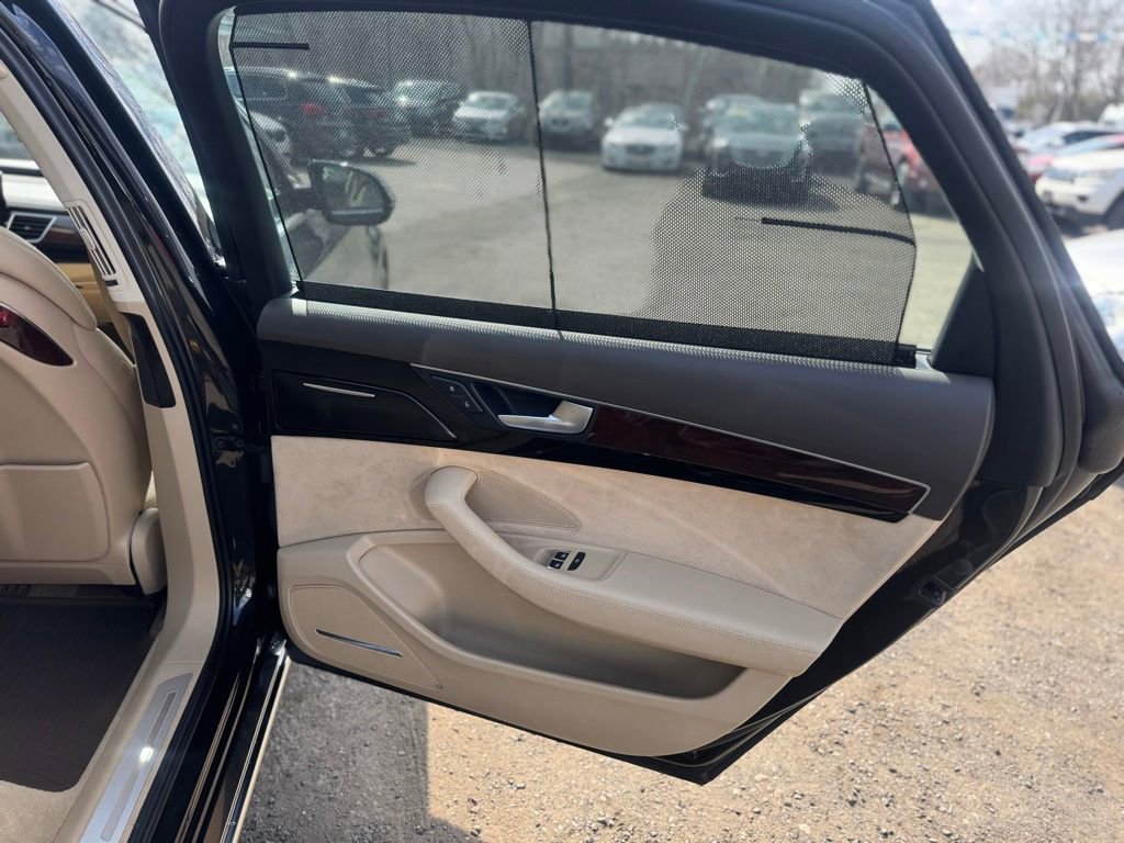 Audiophiles will delight in the 14-speaker sound system with SIRIUS satellite radio, while the advanced navigation system and rear-view camera ensure a seamless driving experience. The adaptive suspension and LED headlights with daytime running lights further enhance the A8 L's sophisticated and dynamic presence on the road.