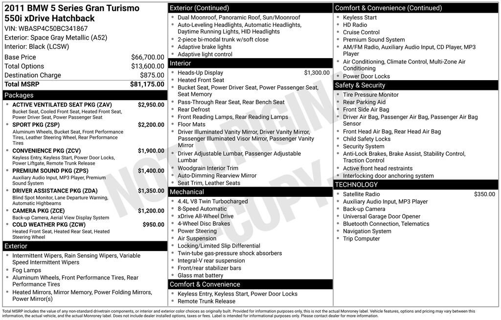 Powered by a robust 4.4L V8 32V Advanced Turbocharged engine paired with an 8-Speed Automatic transmission and BMW's renowned xDrive all-wheel-drive system, this Gran Turismo delivers an exhilarating driving experience. With 15 MPG in the city and 22 MPG on the highway, it strikes the perfect balance between power and efficiency.
