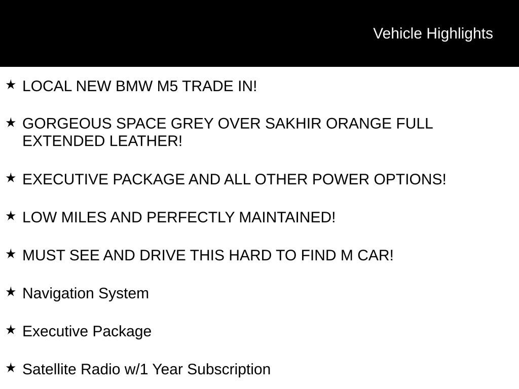 This BMW M5 is a true driver's car, offering a thrilling and responsive behind-the-wheel experience that will captivate even the most discerning enthusiast. With its exceptional performance, stunning design, and comprehensive list of premium features, this M5 is a must-see for anyone seeking the ultimate in luxury and driving dynamics.