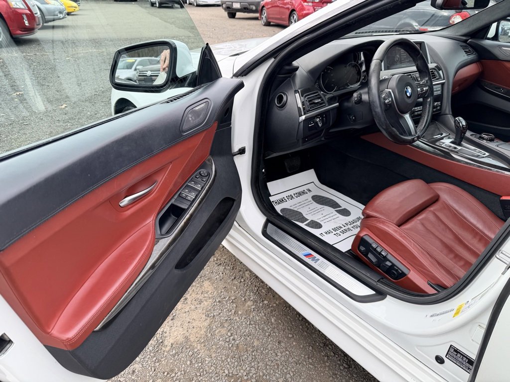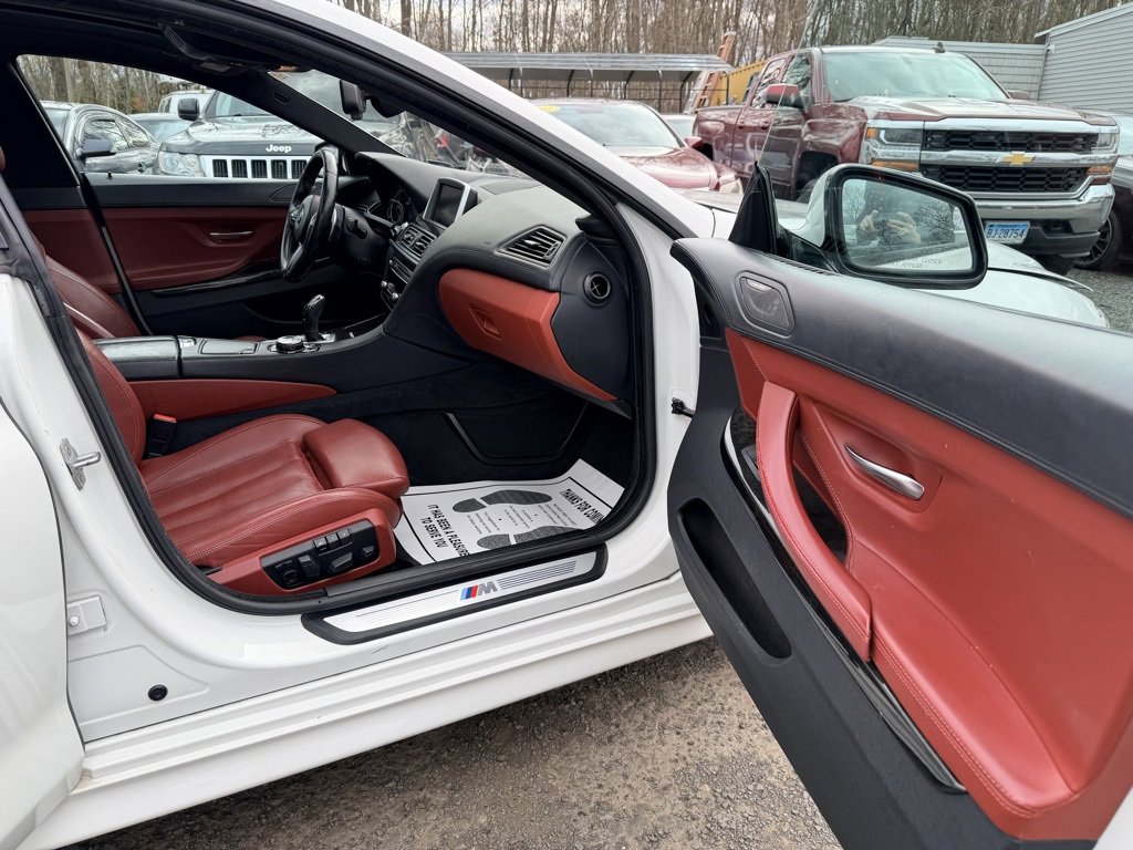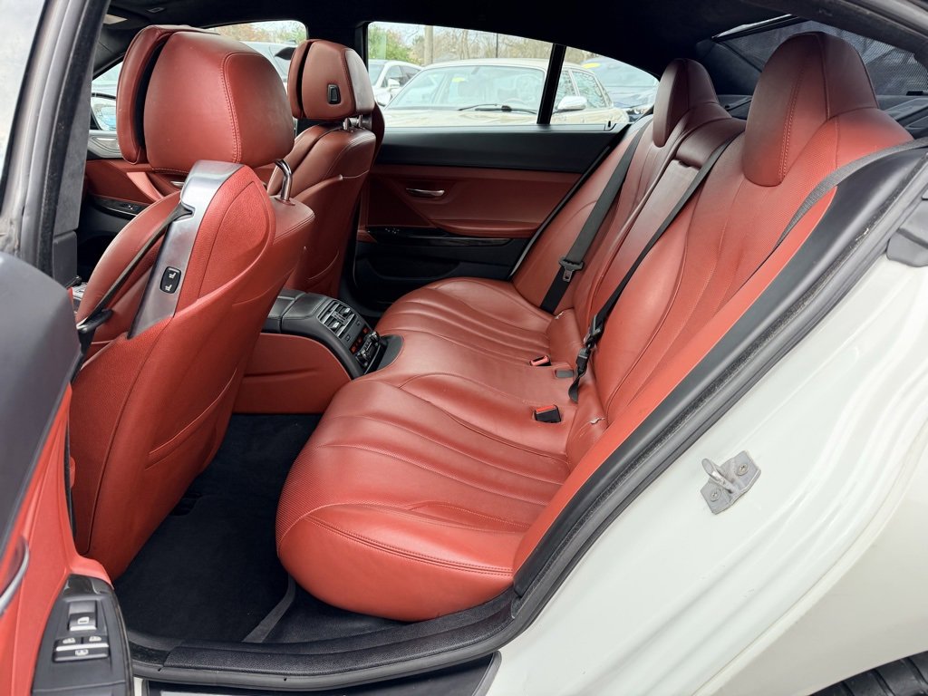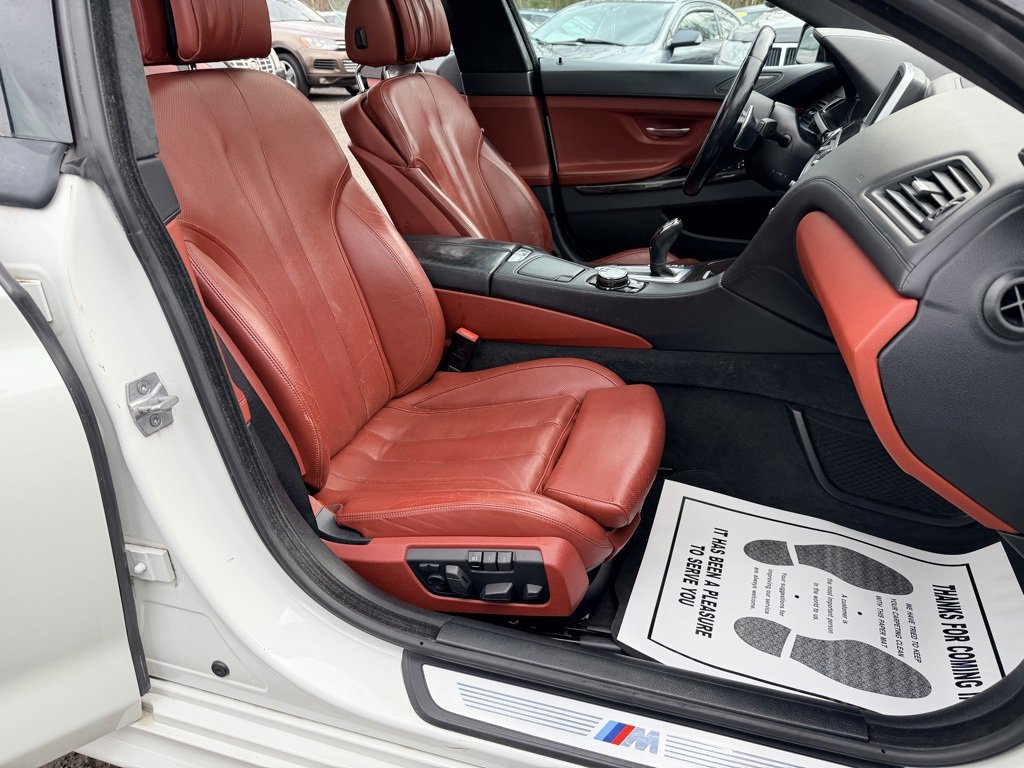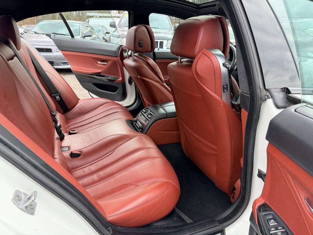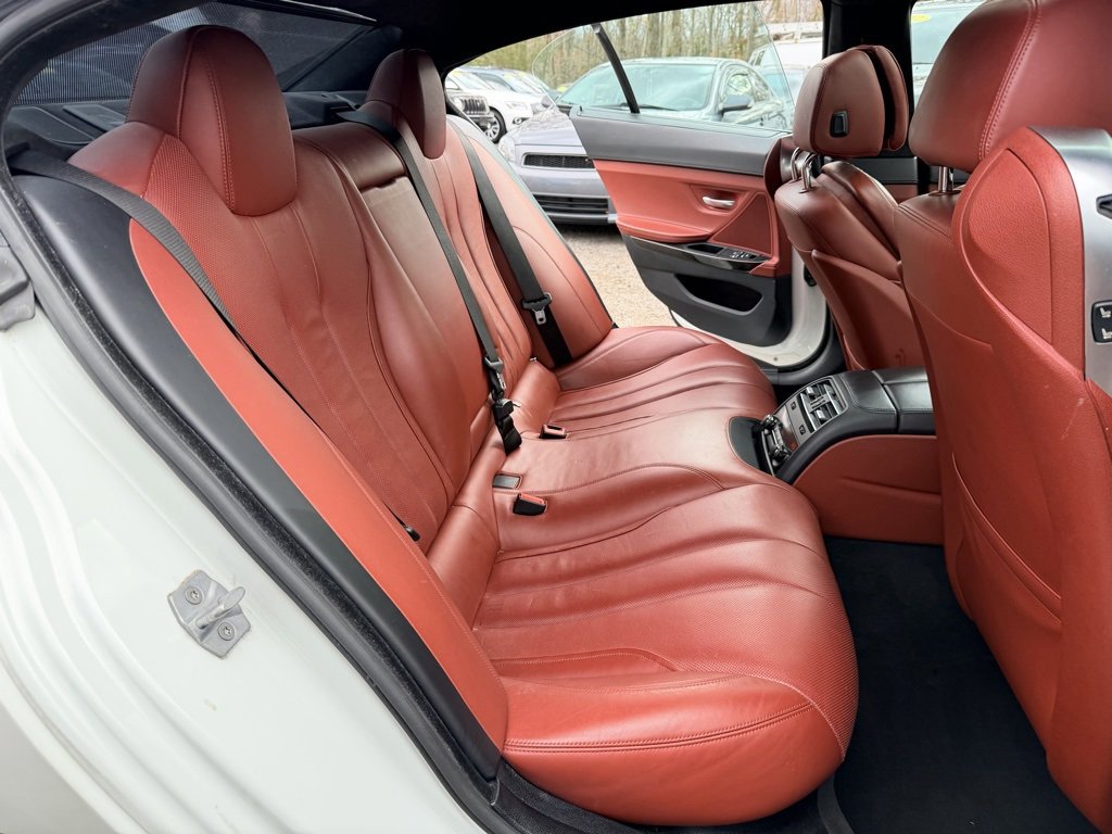 Alpine White 2015 BMW 6 Series 640i Gran Coupe RWD 8-Speed Sport Automatic with Shift Paddles 3.0L I6 GORGEOUS COLOR COMBO ALPINE WHITE OVER RED VERMILLION LEATHER WITH BLACK WHEELS!, EQUIPPED WITH BOTH MSPORT PACKAGES AND ALL OPTIONS!, 6 Series 640i Gran Coupe, 4D Sedan, 3.0L I6, 8-Speed Sport Automatic with Shift Paddles, Alpine White, Vermilion Red w/Perforated Nappa Leather Upholstery, 19" x 8.5" Fr & 19" x 9.0" Rr (Style 351M) Wheels, 4-Wheel Disc Brakes, 4-Zone Automatic Climate Control, 9 Speakers, ABS brakes, Adaptive Full LED Lights, Aerodynamic Kit, Air Conditioning, Alloy wheels, AM/FM radio: SiriusXM, Anthracite Alcantara Headliner, Auto-dimming Rear-View mirror, Automatic High Beams, Automatic temperature control, Brake assist, Ceramic Controls, Concierge Services, Contrast Stitching, Dakota Leather Upholstery, Delay-off headlights, Electronic Stability Control, Enhanced USB & Bluetooth w/Smartphone Integration, Executive Package, Exterior Parking Camera Rear, Four wheel independent suspension, Front Bucket Seats, Front dual zone A/C, Front fog lights, Front Ventilated Seats, Fully automatic headlights, Genuine wood console insert, Genuine wood dashboard insert, Genuine wood door panel insert, harman/kardon Surround Sound System, Head restraints memory, Head-Up Display, Headlight cleaning, Heated door mirrors, Heated Front Seats, Heated front seats, High intensity discharge headlights: Bi-xenon, Increased Top Speed Limiter, Instrument Panel w/Leather Finish, Leather Shift Knob, Leather steering wheel, LED Fog Lights, Lighting Package, M Sport Edition, M Sport Edition (7MH), M Sport Package, M Sport Package (337), M Steering Wheel, Memory seat, Multi-Contour Seats, Outside temperature display, Power driver seat, Power moonroof, Power Rear Sunshade, Power Rear Sunshade & Rear Side Windowshades, Power windows, Rain sensing wipers, Rear window defroster, Remote keyless entry, Security system, Shadowline Exterior Trim, Soft-Close Automatic Doors, Speed-sensing steering, Speed-Sensitive Wipers, Sport steering wheel, Steering wheel memory, Steering wheel mounted audio controls, Tachometer, Telescoping steering wheel, Tilt steering wheel, Without Lines Designation Outside.
