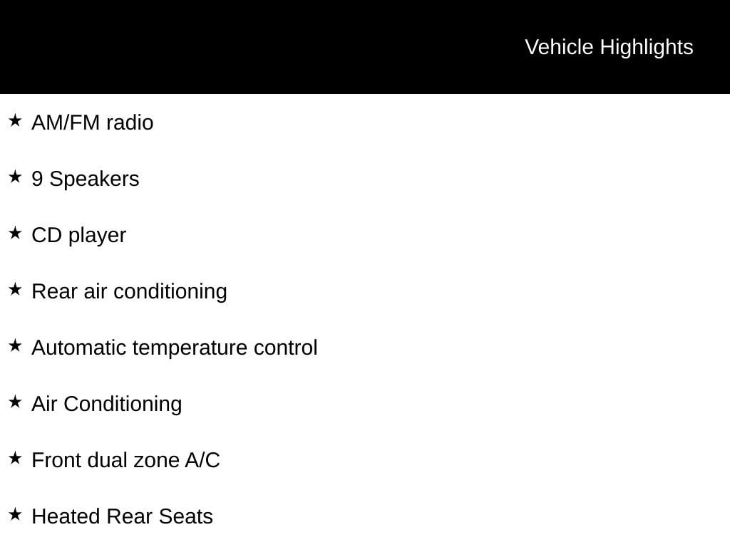 Slip behind the wheel and be greeted by a wealth of premium features that elevate the driving experience. Enjoy the convenience of the Navigation System, the clarity of the 9-Speaker Hi-Fi Sound System, and the seamless connectivity of Hands-Free Bluetooth and USB Audio. Stay comfortable with the Heated Steering Wheel, Heated Front Seats, and Dual-Zone Automatic Climate Control. The Power Liftgate and Rear-View Camera further enhance the vehicle's practicality and ease of use.