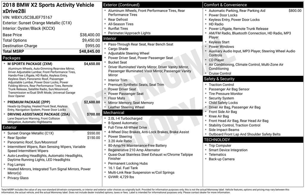 Discover the perfect blend of style, performance, and versatility with this 2018 BMW X2 xDrive28i. This stunning SUV is equipped with a powerful 2.0L 4-cylinder DOHC 16V TwinPower Turbo engine, delivering 21 city and 31 highway MPG, along with the confidence of all-wheel drive.