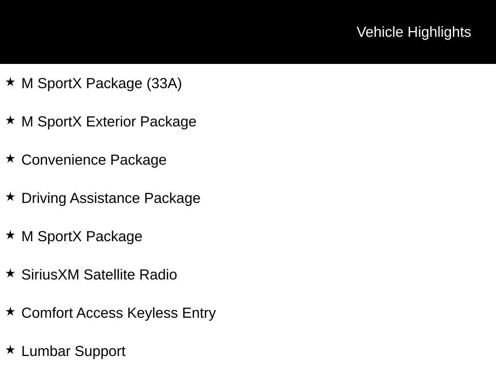 - M SportX Package with Sport Automatic Transmission, Shadowline Exterior Trim, and 19" Bicolor Alloy Wheels