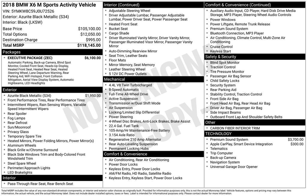 Elevate your driving experience with this stunning 2018 BMW X6 M Base. This one-of-a-kind SUV has been meticulously customized to turn heads wherever you go.