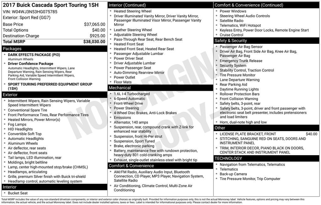 Experience the thrill of open-air driving combined with the refinement and technology you expect from a Buick. Schedule a test drive today and discover why the 2017 Cascada Sport Touring is the perfect companion for your next adventure.