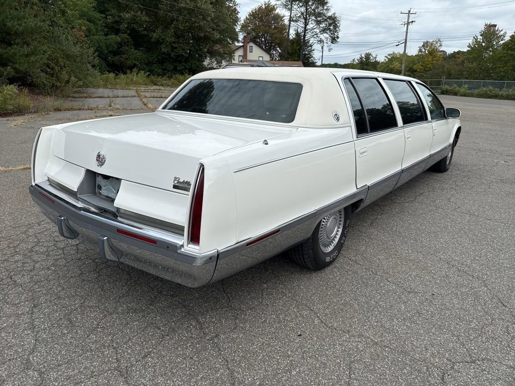 New Price! White 1995 Cadillac Fleetwood BROUGHAM LIMO RWD 4-Speed Automatic 5.7L V8 SMPI 16V 22000 ORIGINAL MILEAGE S AND S COACHBUILDERS 6 DOOR LIMO! IN CALIFORNIA MOST OF ITS LIFE USED FOR PERSONAL APPEARENCES AND IN PRIVATE COLLECTION!, LIKE BRAND NEW INSIDE AND OUT! MIDDLE ROW SEAT FLIPS TO SIT FORWARD OR BACKWARD!!!, EVERY CADILLACOPTION AND MORE!, 1 OF A KIND FLEETWOOD IN TOP CONDITION!, CARFAX SHOWS MILEAGE INCONSITANCY FRONG LONG AGO SOLD BRING SOLD tmu BUT BELIEVED TO BE A TRU 22,000 ALL ORIGINAL CAR INSIDE AND OUT! Fleetwood BROUGHAM LIMO, 4D Sedan, 5.7L V8 SMPI 16V, 4-Speed Automatic, White, BLUE LEATHER, 2.93 Axle Ratio, 4-Wheel Disc Brakes, Air Conditioning, Alarm System, AM/FM radio, Auto-leveling suspension, Automatic Fuel Filler Door Release, Automatic temperature control, Bodyside moldings, Brougham w/Leather Seats, Cassette, Cast Aluminum Wheels, Coachbuilder Limousine Package, Driver vanity mirror, Dual front impact airbags, Dual Heated Seats, Front anti-roll bar, Front Center Armrest w/Storage, Fully automatic headlights, HD Front & Rear Shock Absorbers, HD Wheels, Heated door mirrors, Heavy-Duty Engine Oil Cooler, Heavy-Duty Radiator, Heavy-Duty Transmission Oil Cooler, Illuminated entry, Leather Seat Trim, Leather steering wheel, Passenger vanity mirror, Power door mirrors, Power driver seat, Power passenger seat, Power windows, Rear air conditioning, Rear anti-roll bar, Rear Illuminated Visor Vanity Mirrors, Rear reading lights, Rear seat center armrest, Rear window defroster, Remote keyless entry, Security Package, Security system, Tilt steering wheel, Trip computer, Variably intermittent wipers.