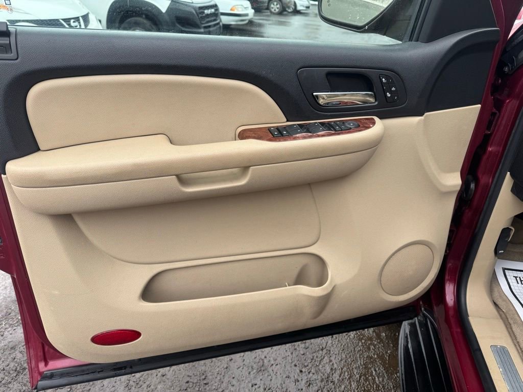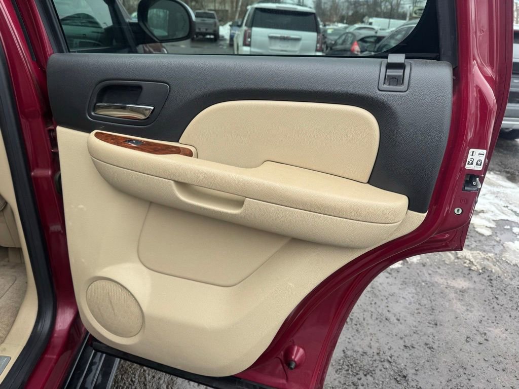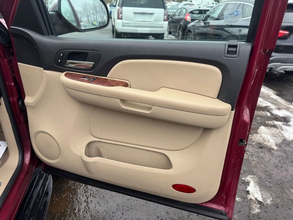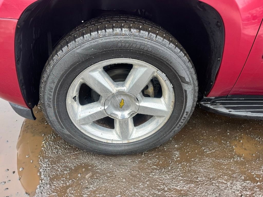 The exterior of this Tahoe LTZ is adorned in a stunning Red color, complemented by a host of premium features that elevate its presence on the road. The chrome grille, door handles, and power-folding mirrors add a touch of elegance, while the sleek roof rails and spoiler enhance its athletic profile.