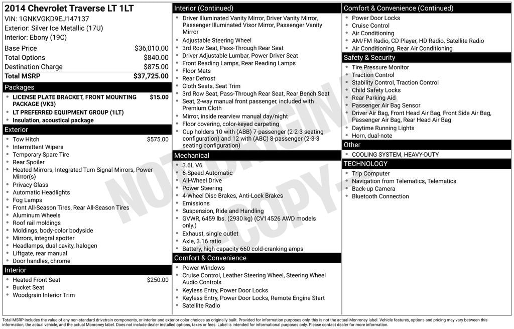 This Traverse LT 1LT boasts a powerful 3.6L V6 engine paired with a smooth-shifting 6-speed automatic transmission, delivering a confident and responsive driving dynamics. With its impressive 23 MPG highway fuel efficiency, you'll enjoy the freedom to explore without frequent stops.