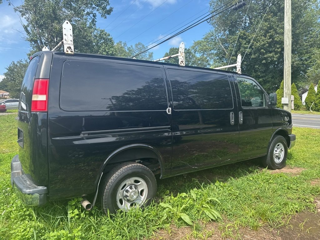 Black 2015 Chevrolet Express 2500 Work Van Cargo RWD 6-Speed Automatic HD with Electronic Overdrive 6.0L V8 SFI LOW MILEAGE 2 OWNER CHEVY EXPRESS 3/4 TON CARGO VAN WITH A POWERHOUSE 6.0 LITER V8 AND ALL POWER OPTIONS!, READY TO WORK WITH LADDER RACKS ALREADY INSTALLED!, Express 2500 Work Van Cargo, 3D Cargo Van, 6.0L V8 SFI, RWD, Black, Medium Pewter w/Custom Cloth Seat Trim or Custom Cloth Seat Trim, 16" x 6.5" Steel Wheels, 2 Speakers, 3.42 Rear Axle Ratio, 4-Wheel Disc Brakes, 7-Pin Sealed Connector Trailer Wiring, ABS brakes, Air Conditioning, Bluetooth® For Phone, Chrome Appearance Package, Chrome Grille, Cold Climate Package, Convenience Package, Cruise Control, Delay-off headlights, Dual Composite Halogen Headlamps, Electronic Stability Control, Engine Block Heater, Front & Rear Chrome Bumpers w/Step-Pad, Front Bucket Seats, Fully automatic headlights, Heavy-Duty Trailering Equipment, Power Door Locks w/Lock-Out Protection, Power windows, Preferred Equipment Group 1, Reclining High-Back Front Bucket Seats, Remote Keyless Entry, SiriusXM Satellite Radio, Sliding Passenger-Side Door, Steering Wheel Mounted Audio Controls, Tilt & Cruise Convenience Package, Tilt Steering Wheel, Traction control.