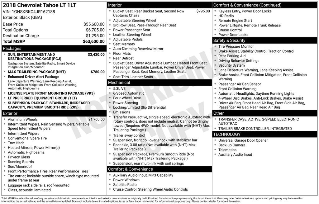 Whether you're embarking on family adventures, tackling tough jobs, or simply seeking a premium driving experience, this 2018 Chevrolet Tahoe LT is the perfect choice. Experience the perfect blend of power, capability, and refined luxury today.