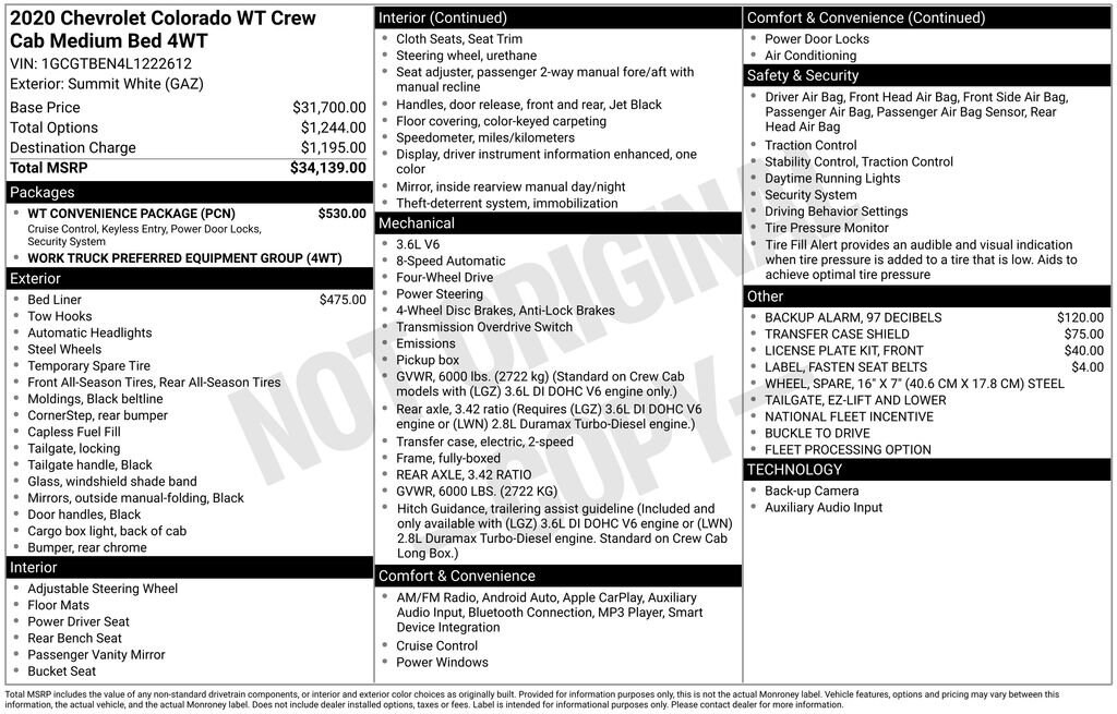 This 2020 Chevrolet Colorado Work Truck is a rugged and capable pickup that's ready to take on any job or adventure. With its powerful V6 engine, 4-wheel drive, and a host of impressive features, this Colorado is the perfect choice for those who demand versatility and performance.