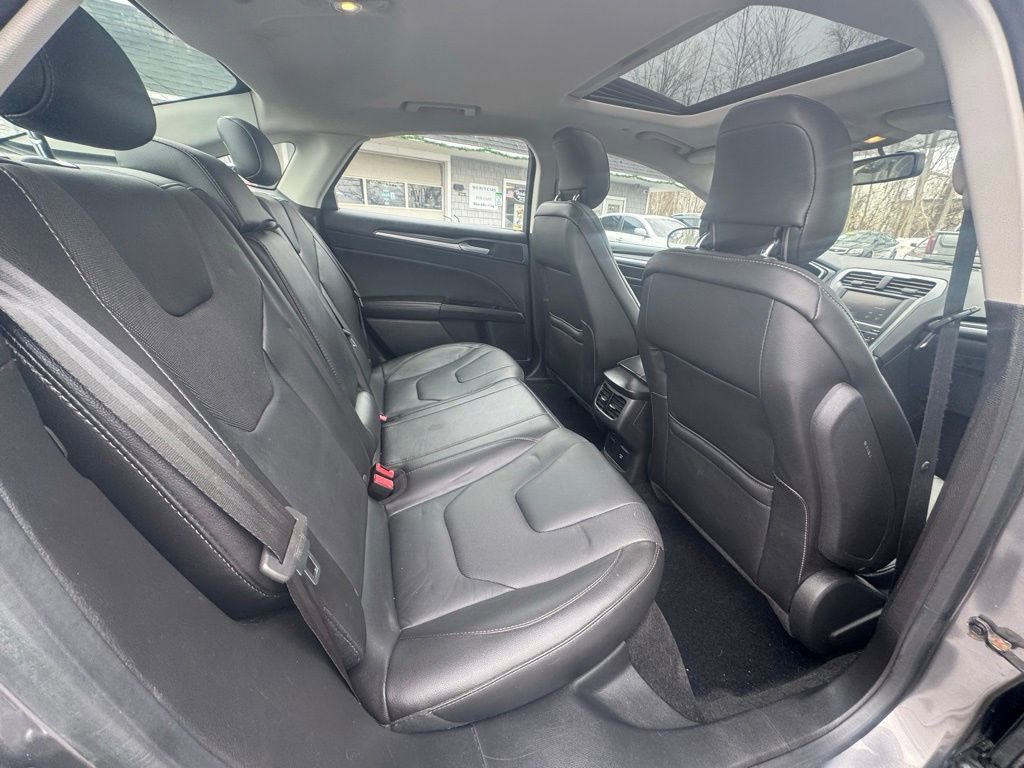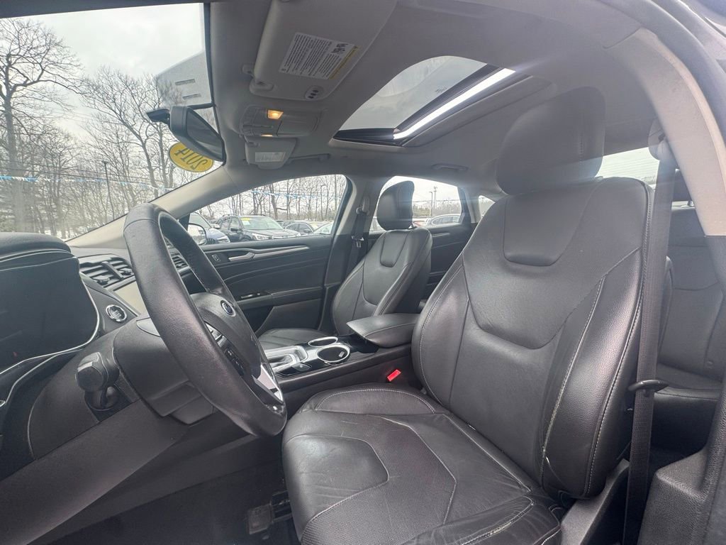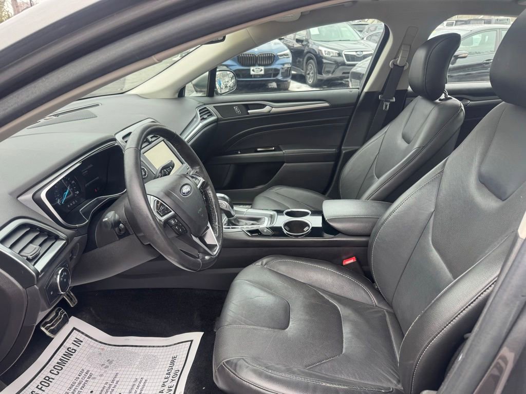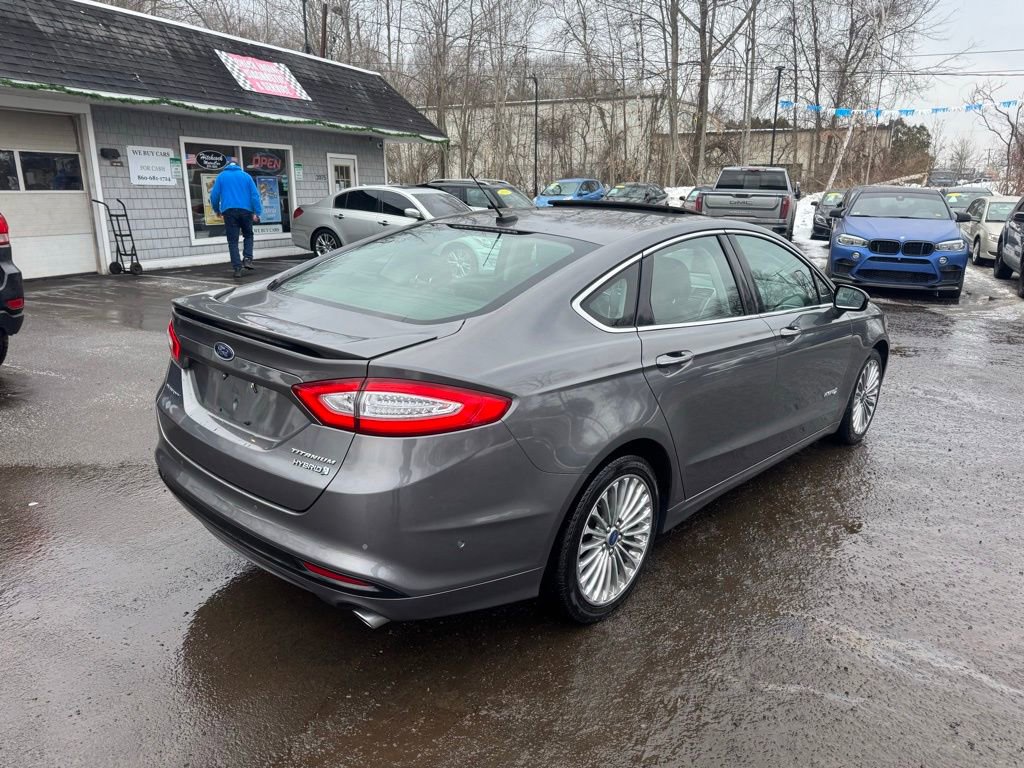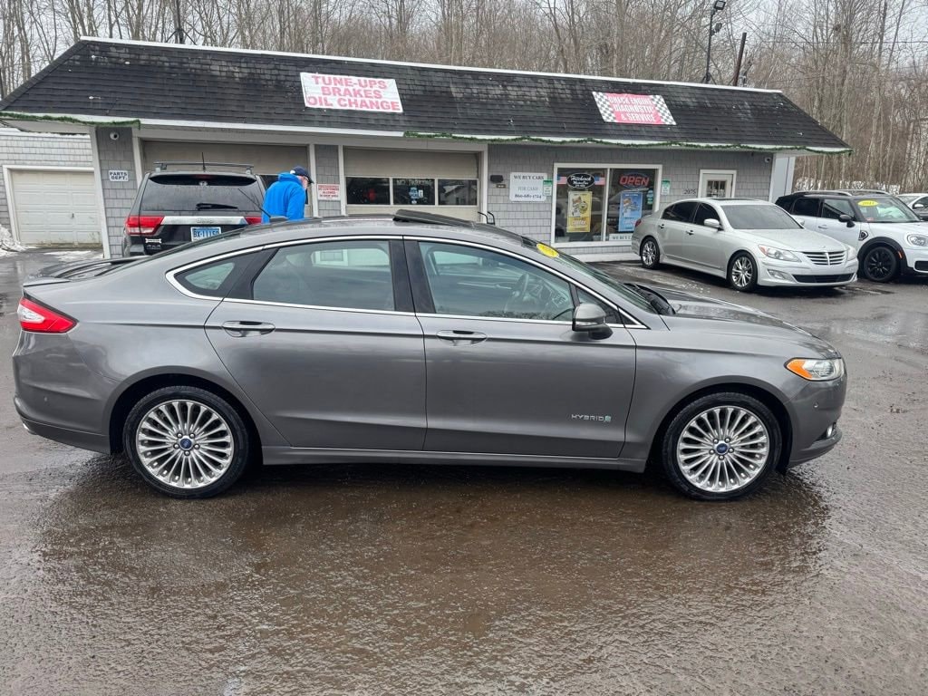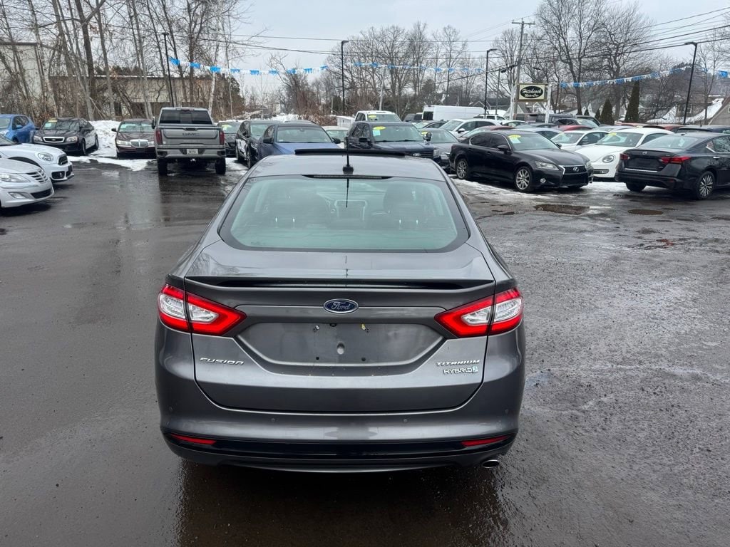 Powered by a 2.0L I4 Atkinson-Cycle Hybrid engine paired with an E-CVT automatic transmission, this Fusion Hybrid delivers an exceptional fuel economy of 44 MPG in the city and 41 MPG on the highway. With its sleek gray exterior and well-appointed Titanium interior, this vehicle exudes a refined and sophisticated presence.
