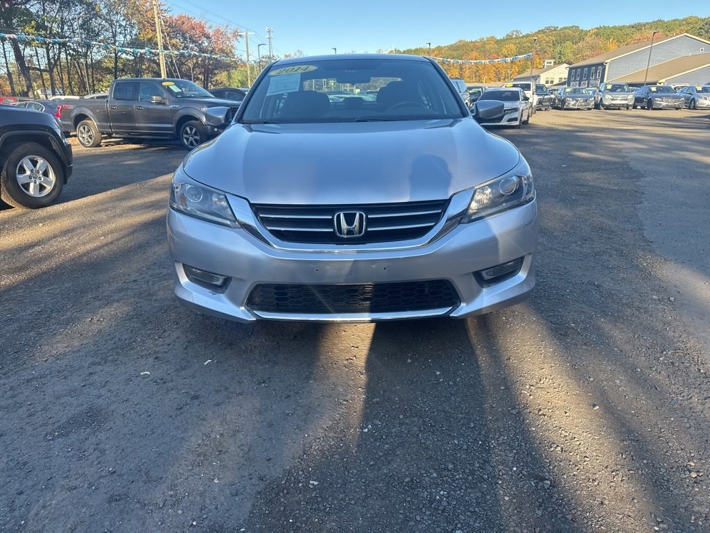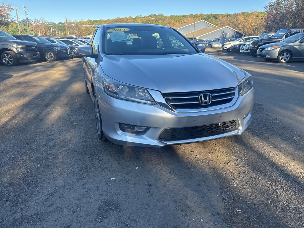 New Price! Silver 2014 Honda Accord Sport FWD CVT 2.4L I4 DOHC i-VTEC 16V 1 OWNER WITH AL SERVICE RECORDS FROM DAY 1 ON CARFAX!, SPORT MODEL AND FULLY LOADED!, RUNS AND LOOKS LIKE NEW!, PRICED WELL UNDER MARKET!, Accord Sport, 4D Sedan, 2.4L I4 DOHC i-VTEC 16V, FWD, Silver, Black Cloth, 160-Watt AM/FM/CD Audio System, 18" Alloy Wheels, 4-Wheel Disc Brakes, ABS brakes, Air Conditioning, AM/FM radio, Automatic temperature control, Brake assist, Bumpers: body-color, CD player, Cloth Seat Trim, Delay-off headlights, Electronic Stability Control, Exterior Parking Camera Rear, Four wheel independent suspension, Front Bucket Seats, Front dual zone A/C, Front fog lights, Fully automatic headlights, Illuminated entry, Leather steering wheel, Outside temperature display, Power door mirrors, Power driver seat, Power windows, Rear seat center armrest, Remote keyless entry, Security system, Speed-sensing steering, Speed-Sensitive Wipers, Spoiler, Steering wheel mounted audio controls, Tachometer, Telescoping steering wheel, Tilt steering wheel, Trip computer.