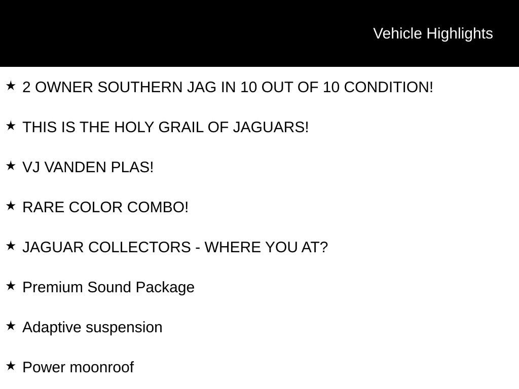 This Jaguar XJ Vanden Plas is not just a car, it's a statement of refined taste and discerning style. With its exceptional condition, rare color combination, and impressive list of premium features, it's the perfect choice for the Jaguar enthusiast or the discerning buyer seeking the ultimate in luxury and performance.