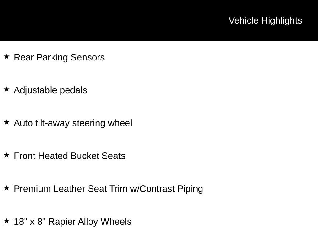Indulge in the ultimate in luxury and comfort with this Jaguar's impressive array of premium features, including Adaptive suspension, Power moonroof, Rear Parking Sensors, Adjustable pedals, Auto tilt-away steering wheel, Front Heated Bucket Seats, and Premium Leather Seat Trim with Contrast Piping. The 18" x 8" Rapier Alloy Wheels add a touch of sophistication to this captivating vehicle.