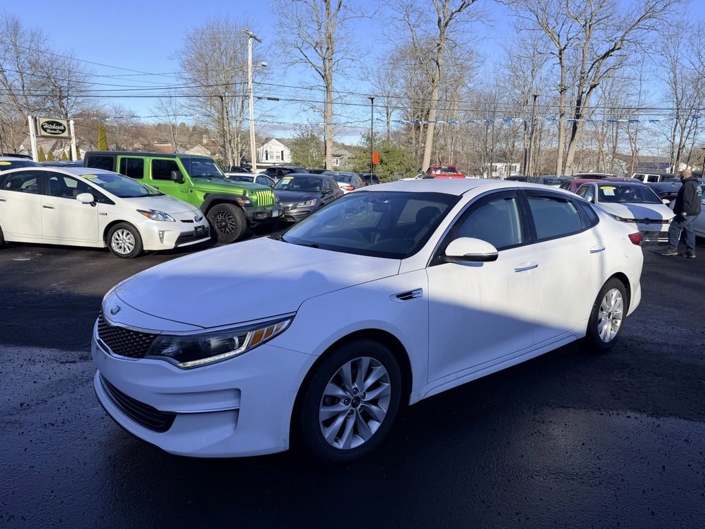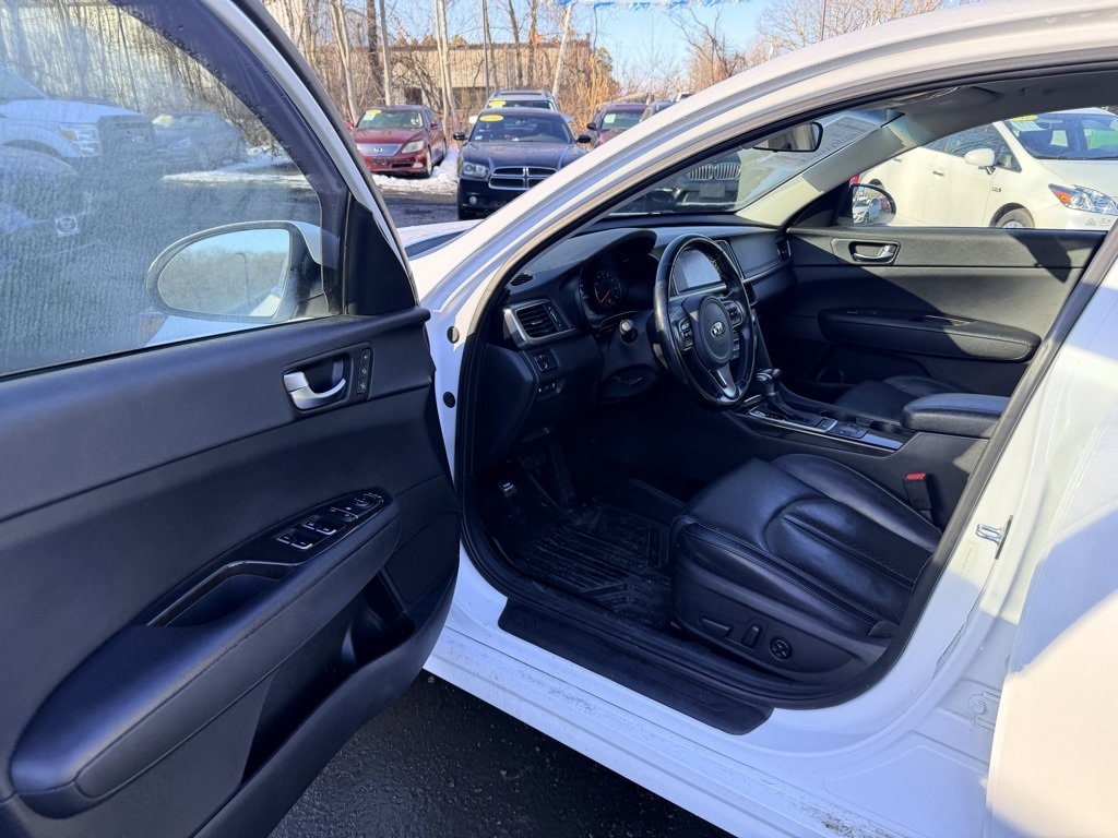 Snow White Pearl 2018 Kia Optima EX FWD 6-Speed Automatic with Sportmatic 2.4L I4 DGI DOHC 2 OWNER LOCAL TRADE IN!, EX MODEL WITH ALL POWER OPTIONS, HEATED LEATHER, Optima EX, 4D Sedan, 2.4L I4 DGI DOHC, 6-Speed Automatic with Sportmatic, FWD, Snow White Pearl, Black Leather, 4-Wheel Disc Brakes, 6 Speakers, 6.5J x 17" Alloy Wheels, ABS brakes, Air Conditioning, AM/FM radio: SiriusXM, Apple CarPlay & Android Auto, Automatic temperature control, Brake assist, Electronic Stability Control, Exterior Parking Camera Rear, Front dual zone A/C, Heated door mirrors, Heated Front Bucket Seats, Illuminated entry, Leather Seat Trim, Leather Shift Knob, Leather steering wheel, Memory seat, Power door mirrors, Power driver seat, Power windows, Radio data system, Radio: AM/FM/MP3/SiriusXM Audio System, Rear Bumper Applique, Rear Parking Sensors, Remote keyless entry, Split folding rear seat, Steering wheel mounted audio controls, Tachometer, Telescoping steering wheel, Tilt steering wheel.