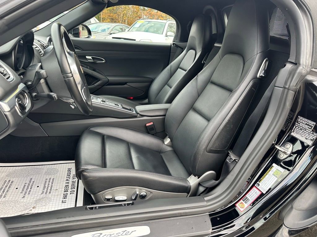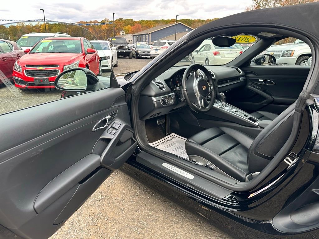 Black 2013 Porsche Boxster RWD 7-Speed Porsche Doppelkupplung (PDK) 2.7L H6 DI DOHC 24V ULEV II 265hp 2 OWNER LOCAL NEW PORSCHE 911 TRADE!!!, BLACK ON BLACK ON BLACK!, ALL FACTORY OPTION UPGRADES! MUST SEE AND DRIVE THIS ULTRA LOW MILEAGE PORSHCE CONVERTIBLE!, 2D Convertible, 2.7L H6 DI DOHC 24V ULEV II 265hp, RWD, Black, Black w/Leather Seat Trim, 14-Way Electric Sport Seats w/Memory Package, 2-Zone Automatic Air Conditioning, 4 Speakers, 4-Wheel Disc Brakes, ABS brakes, Air Conditioning, AM/FM radio, Automatically Dimming Interior & Exterior Mirrors, Bi-Xenon Lighting Sys w/Dynamic Light Sys (PDLS), Brake assist, Bumpers: body-color, CD player, Convertible roof lining, Electronic Stability Control, Four wheel independent suspension, Fr 8J x 18 & Rr 9J x 18 Boxster Alloy Wheels, Front fog lights, Front Sports Seats, Fully automatic headlights, Garage door transmitter: HomeLink, Glass rear window, Heated door mirrors, Illuminated entry, Infotainment Package, Leather Interior Package, Leather Seat Trim, Leather Shift Knob, Leather steering wheel, Memory Function, Outside temperature display, Power convertible roof, Power driver seat, Power passenger seat, Power windows, Premium Package, Radio: CDR Audio Sys w/7" QVGA Touchscreen Display, Remote keyless entry, SAT Radio Receiver XM, Seat Heating, Spoiler, Tachometer, Telescoping steering wheel, Tilt steering wheel, Wind Deflector Mounted on Roll-Over Bar.