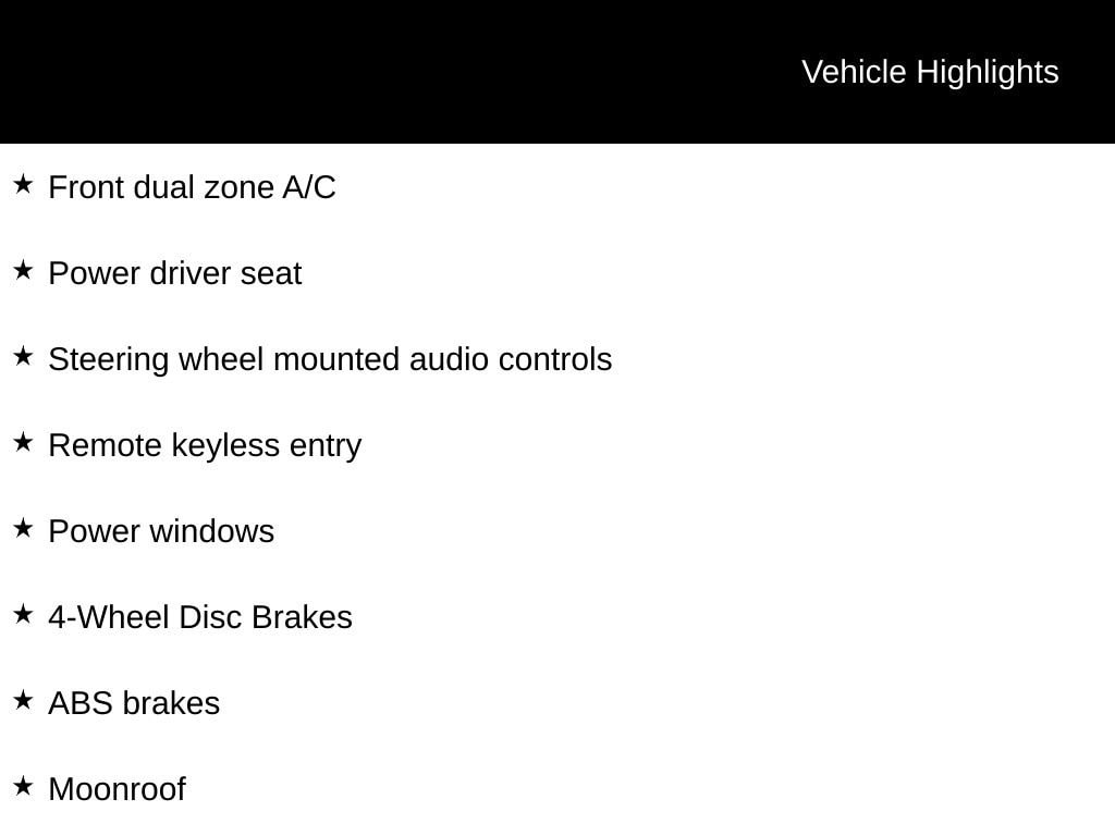 - Power driver seat, Power windows, Remote keyless entry