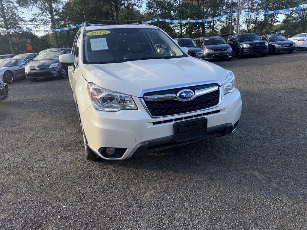 Satin White Pearl 2015 Subaru Forester 2.5i Limited AWD Lineartronic CVT 2.5L 4-Cylinder DOHC 16V VVT low, LOW MILEAGE OUTBACK LIMITED WITH HEATED LEATHER AND ALL POWER OPTIONS!, GORGEOUS CAR MUST SEE AND DRIVE! AWD - JUST IN TIME FOR THE WINTER!, Forester 2.5i Limited, 4D Sport Utility, 2.5L 4-Cylinder DOHC 16V VVT, AWD, Satin White Pearl, Gray Leather, 17" Alloy Wheels, 4-Wheel Disc Brakes, ABS brakes, Aha Infotainment, Air Conditioning, Automatic temperature control, Exterior Parking Camera Rear, Front Bucket Seats, Front fog lights, Fully automatic headlights, harman/kardon 440W Amp & Speaker System, Heated Front Bucket Seats, Illuminated entry, Leather Shift Knob, Navigation System, Navigation System & Audio w/harman kardon, Perforated Leather-Trimmed Upholstery, Power door mirrors, Power driver seat, Power Liftgate, Power moonroof, Power windows, Radio: HD AM/FM Stereo w/Single CD Player, Remote keyless entry, Split folding rear seat, Steering wheel mounted audio controls, Tachometer, Telescoping steering wheel, Touch-Screen GPS Navigation System.