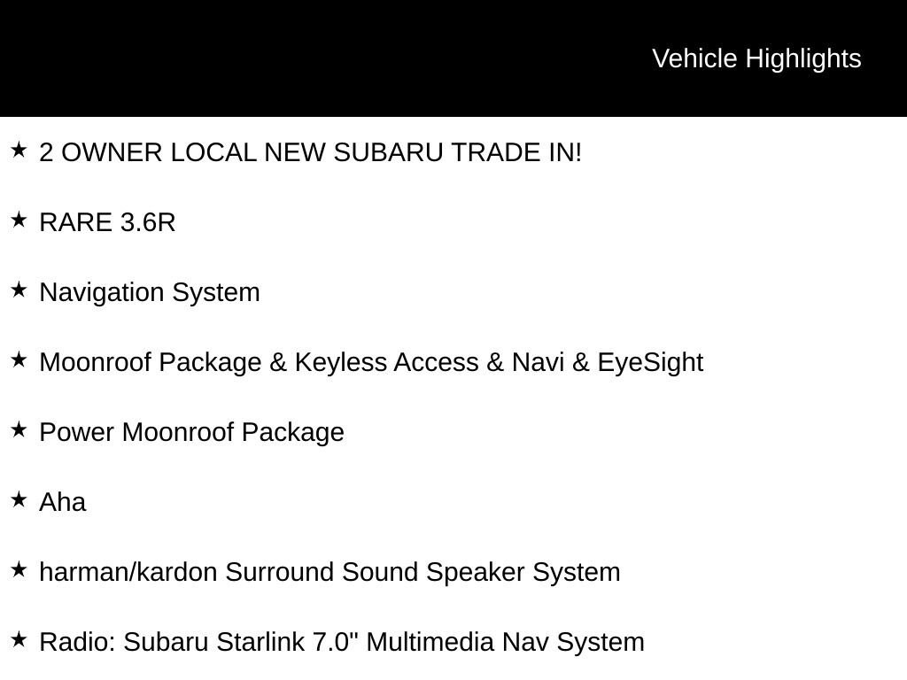 - MOONROOF PACKAGE & KEYLESS ACCESS & NAVI & EYESIGHT