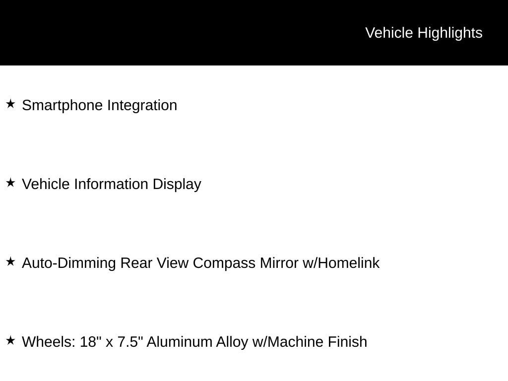 - Wheels: 18 x 7.5 Aluminum Alloy w/Machine Finish