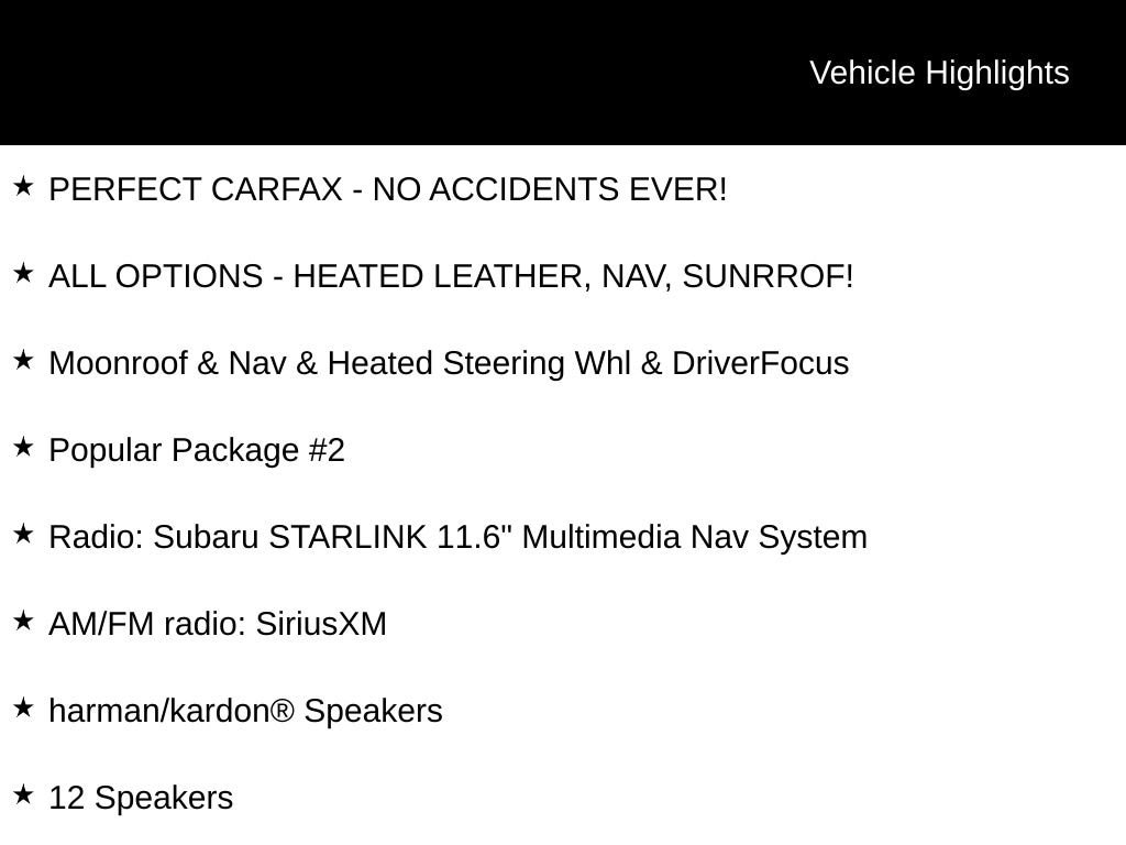 THIS SUBARU IS LIKE NEW INSIDE AND OUT! Finished in factory Ice Silver Metallic - perfect CARFAX with no accidents ever! 2020 Subaru Legacy Limited AWD Lineartronic CVT 2.5L 4-Cylinder DOHC 16V PERFECT CARFAX - NO ACCIDENTS EVER!, ALL OPTIONS - HEATED LEATHER, NAV, SUNRROF!, Legacy Limited, 4D Sedan, 2.5L 4-Cylinder DOHC 16V, AWD, Ice Silver Metallic, Black Leather, 12 Speakers, 4-Wheel Disc Brakes, ABS brakes, Air Conditioning, All-Weather Floor Liners, AM/FM radio: SiriusXM, Auto High-beam Headlights, Automatic temperature control, Brake assist, Bumpers: body-color, Cargo Tray, Dome Light LED Upgrade, Driver Monitoring System (DMS)/DriverFocus, Electronic Stability Control, Exterior Auto-Dimming Mirror w/Approach Light, Exterior Parking Camera Rear, Front Bucket Seats, Front dual zone A/C, Front fog lights, Fully automatic headlights, Garage door transmitter: HomeLink, harman/kardon® Speakers, Heated Front Bucket Seats, Heated rear seats, Heated Steering Wheel, Illuminated entry, Leather Shift Knob, Leather steering wheel, Memory seat, Moonroof & Nav & Heated Steering Whl & Driver Focus, Outside temperature display, Perforated Leather-Trimmed Upholstery, Popular Package #2, Power driver seat, Power Moonroof, Power passenger seat, Power windows, Radio: Subaru STARLINK 11.6" Multimedia Nav System, Rear Bumper Applique, Remote keyless entry, Security system, Speed control, Splash Guards, Split folding rear seat, STARLINK/Apple CarPlay/Android Auto, Steering wheel mounted audio controls, Tachometer, Telescoping steering wheel, Tilt steering wheel, Wheels: 18" x 7.5" Black w/Machine Finish Alloy.