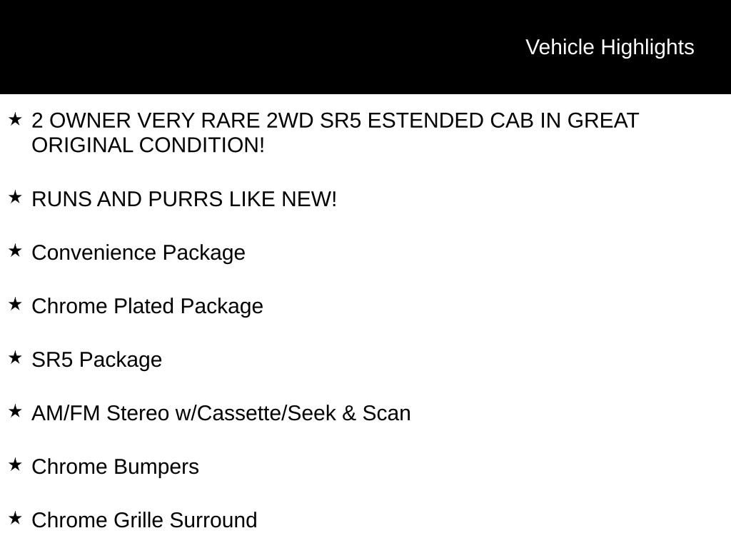 2 OWNER VERY RARE 2WD SR5 ESTENDED CAB IN GREAT ORIGINAL CONDITION!