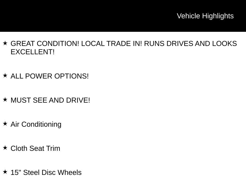 Slip inside and you'll be greeted by a well-appointed interior, featuring comfortable cloth seating, a convenient center armrest, and a host of thoughtful amenities. Stay connected with the AM/FM radio and CD player, and enjoy the added convenience of power steering, tilt/telescoping steering wheel, and an outside temperature display.