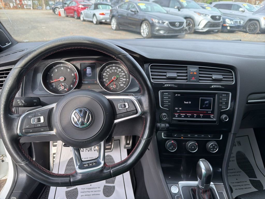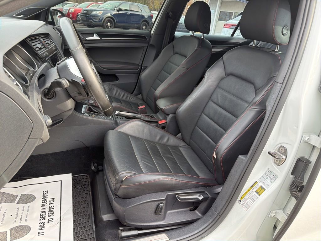 Pure White 2017 Volkswagen Golf GTI SE FWD 6-Speed DSG Automatic with Tiptronic 2.0L TSI 3 OWNER LOCAL TRADE WITH A PERFECT CARFAX AND FULL MAINTENANCE HISTORY FROM DAY1 ON A PERFECT CARFAX WITH NO ACCIDENTS EVER!, ALL ORIGINAL PAINT SE MODEL AND IT IS BONE STOCK WITH NO MODIFICATIONS EVER!, Golf GTI SE, 4D Hatchback, 2.0L TSI, 6-Speed DSG Automatic with Tiptronic, FWD, Pure White, Titan Black w/Red Piping w/Leather Seating Surfaces, 4-Wheel Disc Brakes, 9 Speakers, ABS brakes, Adaptive Cruise Control, Air Conditioning, AM/FM radio: SiriusXM, Bi-Xenon Headlights, Brake assist, CD player, Electronic Stability Control, Exterior Parking Camera Rear, Four wheel independent suspension, Front Center Armrest, Front fog lights, Fully automatic headlights, Heated door mirrors, Heated Top Sport Front Seats, High intensity discharge headlights: Bi-Xenon, Illuminated entry, Leather Seating Surfaces, Leather Shift Knob, Leather steering wheel, LED Daytime Running Lights (DRL), Outside temperature display, Overhead console, Power door mirrors, Power driver seat, Power moonroof, Power passenger seat, Power windows, Radio: Composition Media w/6.5" Touchscreen, Rain sensing wipers, Rear window wiper, Remote keyless entry, Security system, Speed-sensing steering, Speed-Sensitive Wipers, Split folding rear seat, Spoiler, Sport steering wheel, Steering wheel mounted audio controls, Tachometer, Telescoping steering wheel, Tilt steering wheel, Turn signal indicator mirrors, Wheels: 18" Austin Alloy.